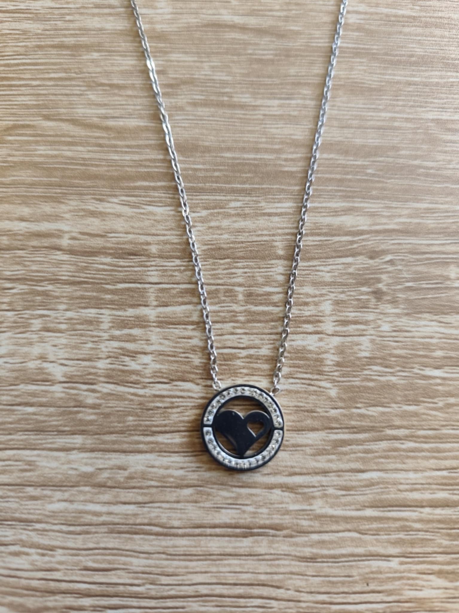 Collier rond avec strass et coeur au mileu